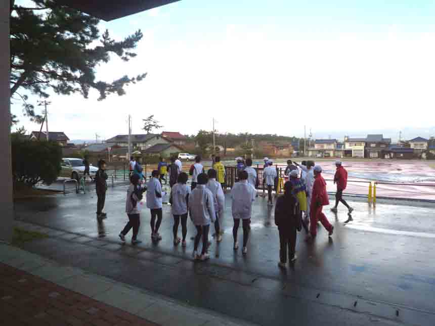ゴール後は即けんちんそばに並びました。