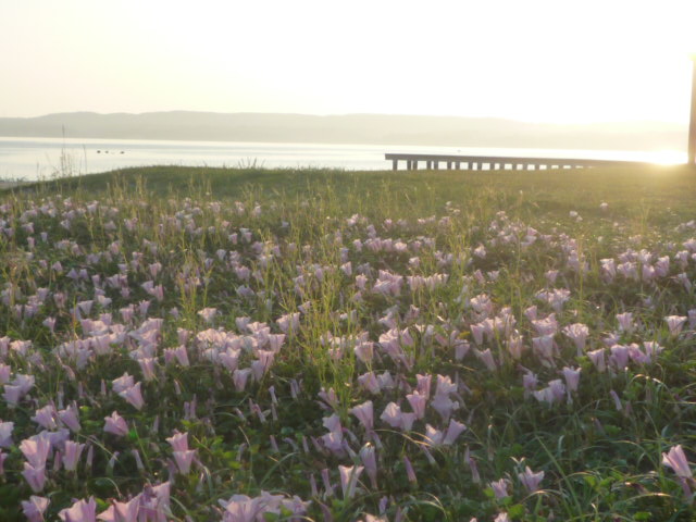 今は朝の散歩コースの海岸の濱昼顔が盛りです。