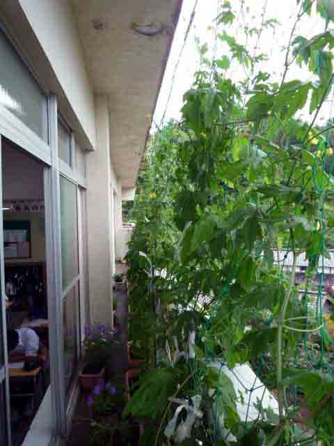 グリーンカーテンもだいぶ広がりつつはあるものの