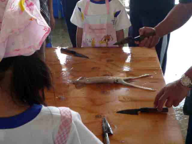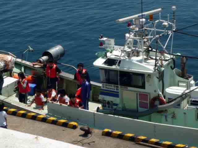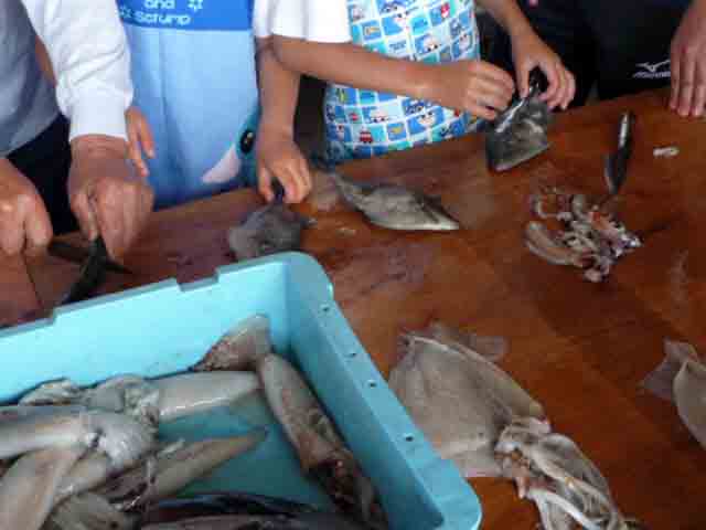 今日はその漁業組合で,小中一緒の体験学習に参加しました。