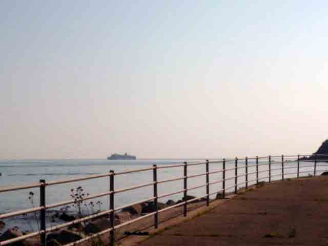 今朝はそんなに遅くないのにフェリーが岬をすぎていた。